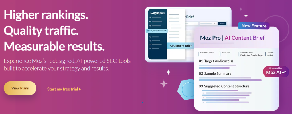 Moz Pro: Known for its comprehensive suite of SEO tools including keyword research, rank tracking, site auditing, and backlink analysis.